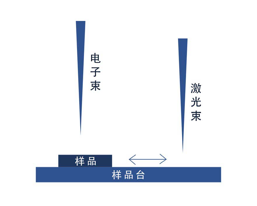 北京卓立汉光仪器有限公司推出的扫描电镜-拉曼光谱联用装置采用“离轴”模式设计理念。“离轴”模式扫描电镜的电子束与拉曼光谱的激光束不同轴,通过移动样品台分别进行扫描电镜-能谱分析和显微拉曼光谱分析,原位获取样品指定位置的形貌信息和化学成分信息。
