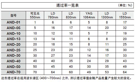 注:吸收式中性密度滤光片选型表 详见产品资料