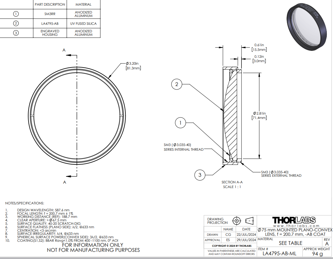 - 提供Ø1/2英寸、Ø1英寸、Ø2英寸和Ø75 mm透镜,带SM螺纹安装座