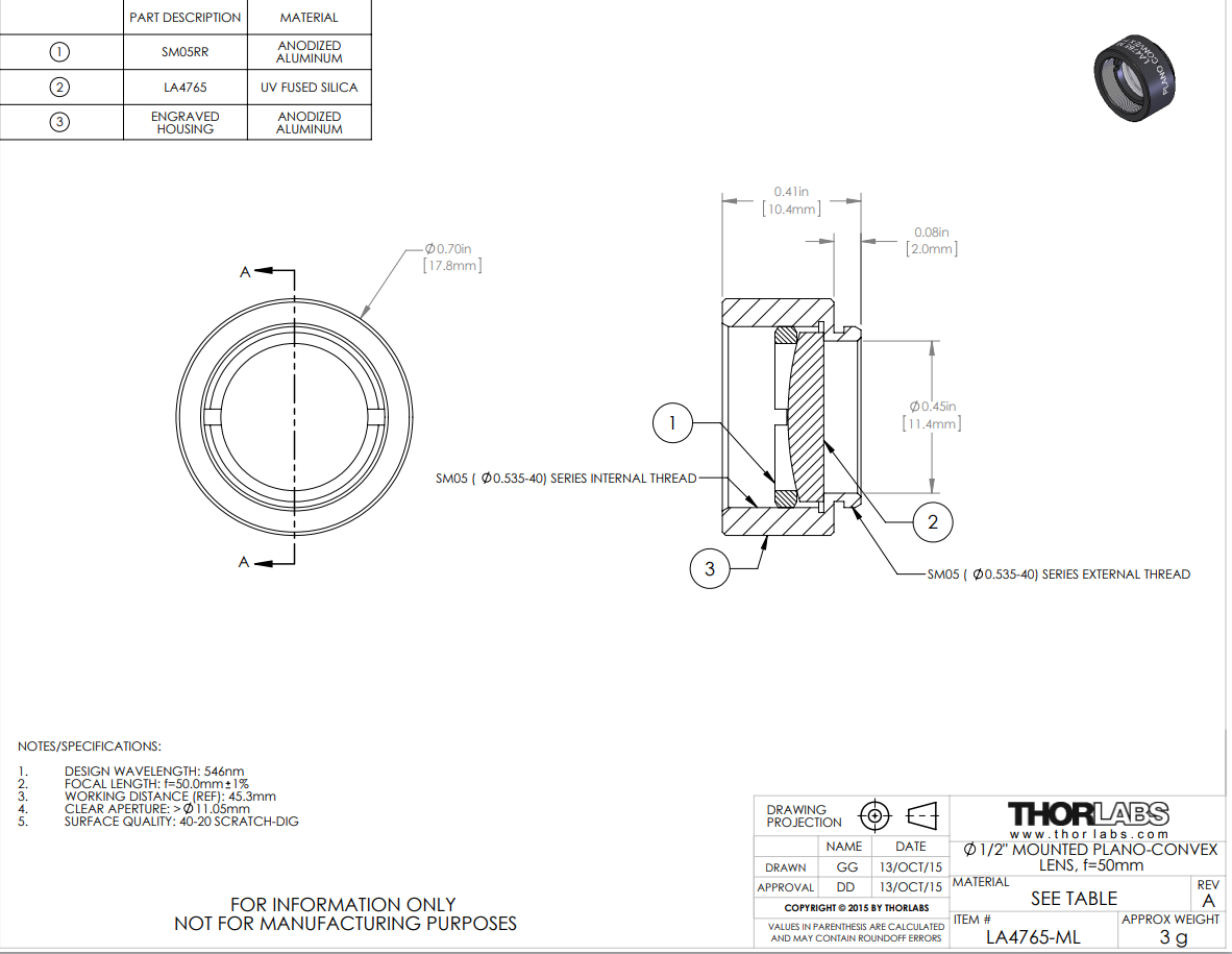 - 提供Ø1/2英寸、Ø1英寸,Ø2英寸和Ø75 mm 透镜,安装在SM螺纹外壳中