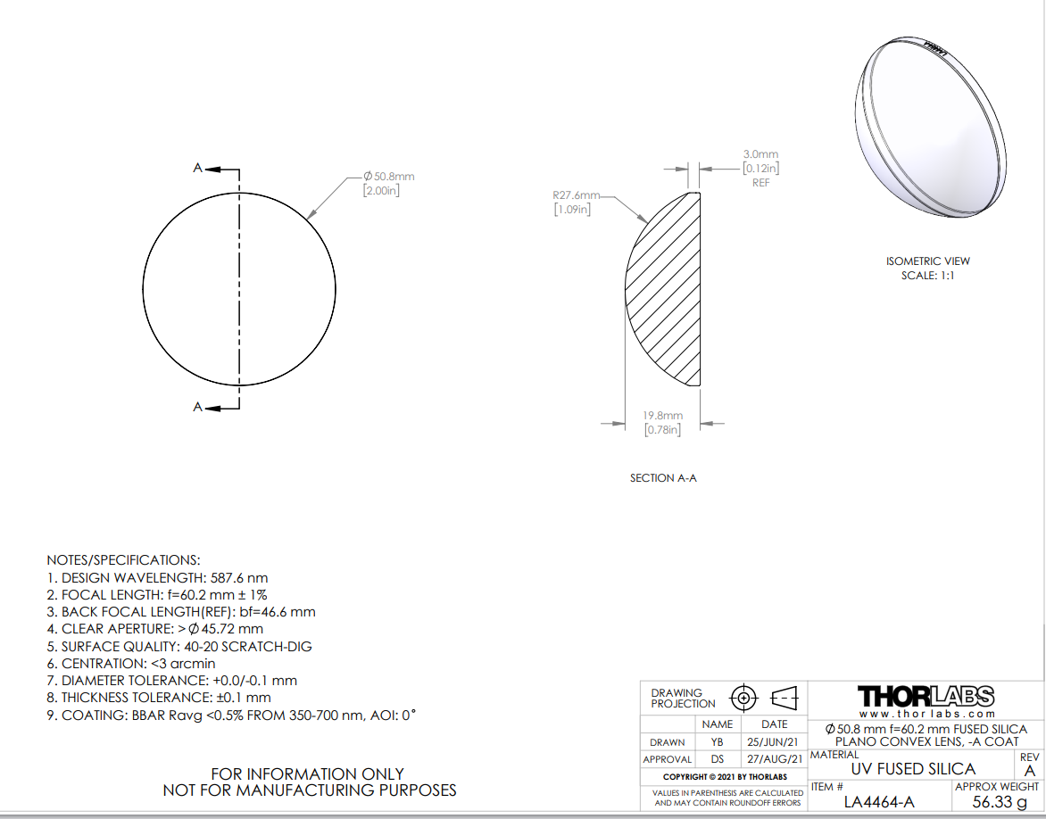 Thorlabs索雷博 LA4464-A 平凸透镜