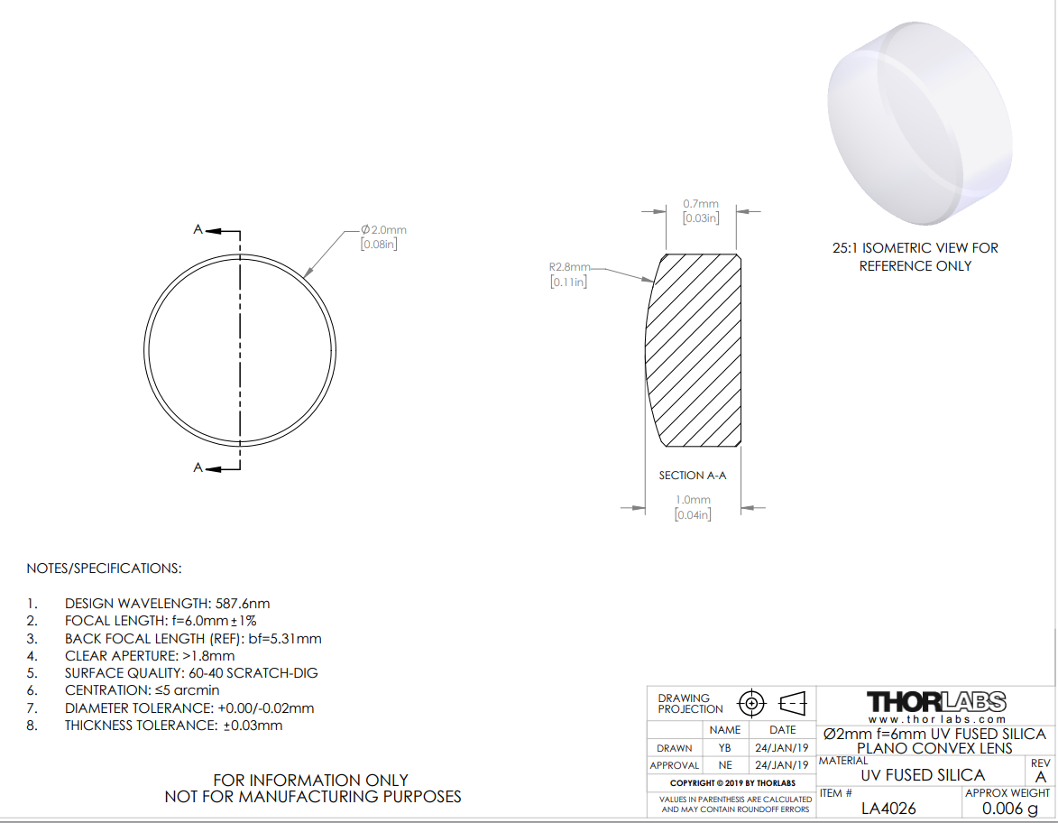 Thorlabs还提供紫外熔石英透镜套件。