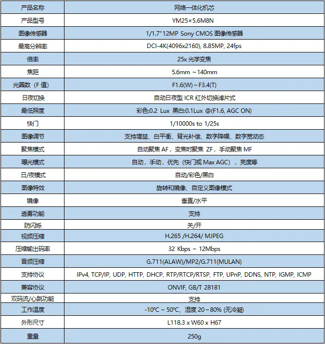 山田YAMAKO YM25x5.6M8N 网络一体化机芯