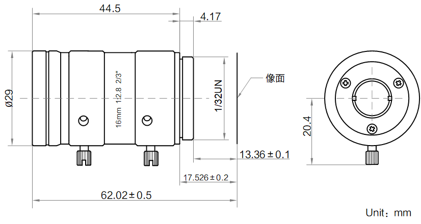 像面尺寸 | Φ11.2 mm(2/3'') |