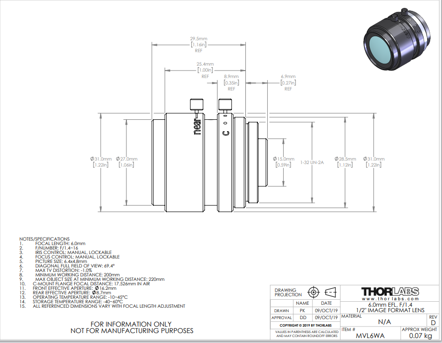 Thorlabs索雷博 MVL6WA 定焦镜头