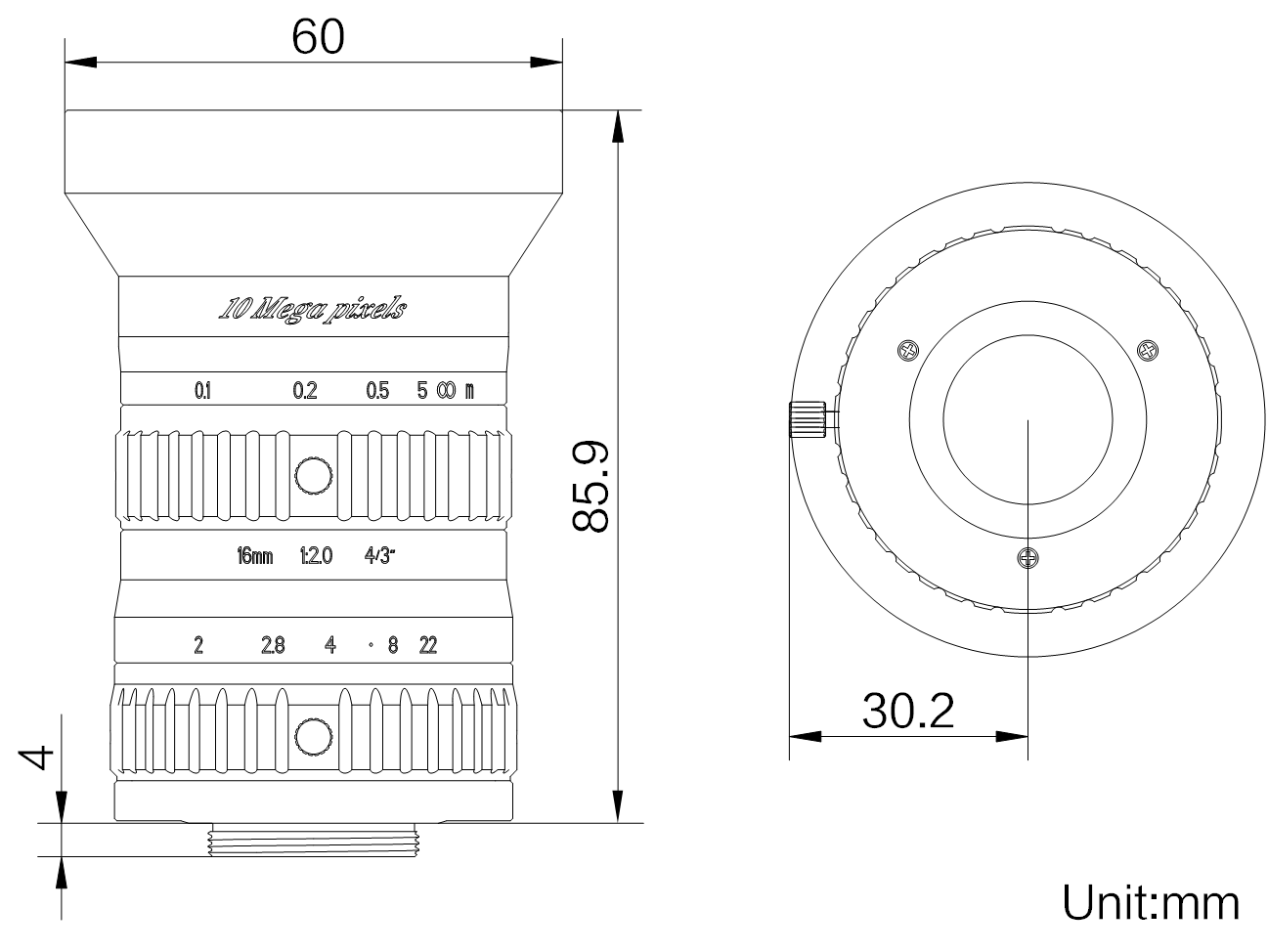 名称 | 16mm,F2.0,4/3",1000万分辨率,C接口镜头 |