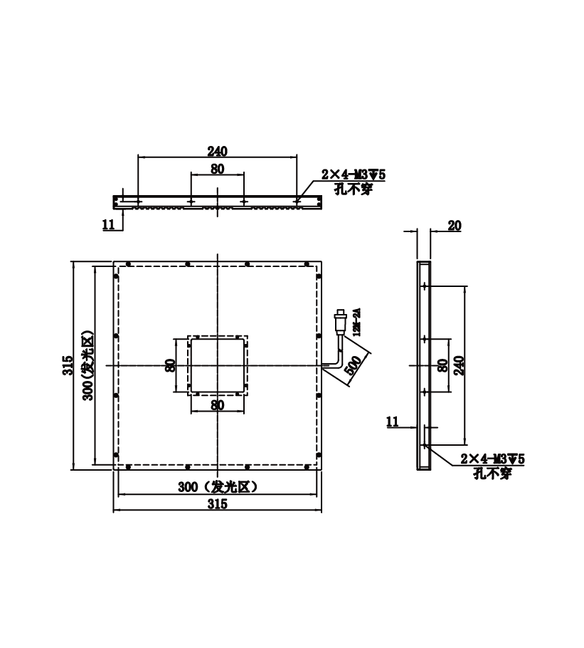 外形尺寸 | 315 mm × 315 mm × 20 mm |
