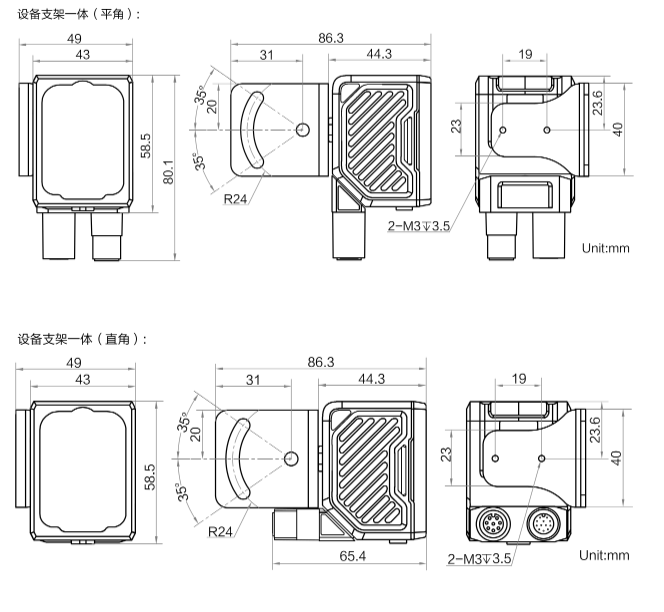 外形尺寸 | 平角:80.1 mm × 43 mm × 44.3 mm 直角:58.5 mm × 43 mm × 65.4 mm |
