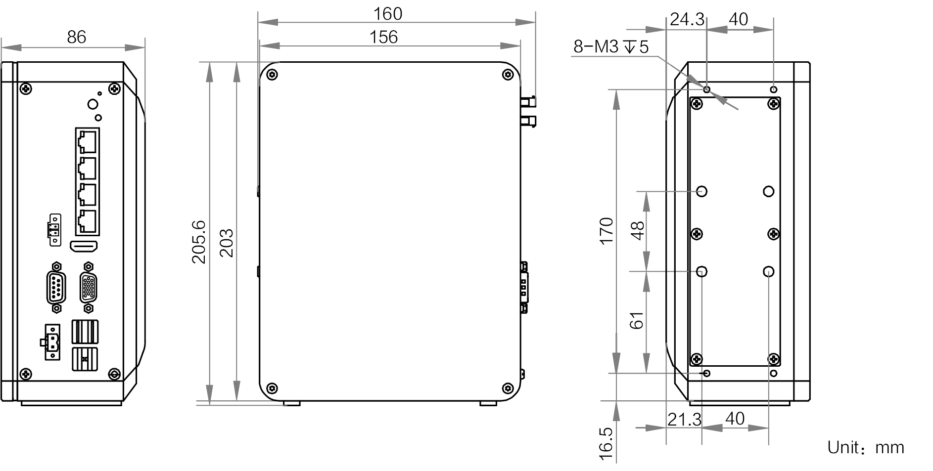 | 结构 | 外形尺寸 | 160.59 mm × 205.6 mm × 86 mm |