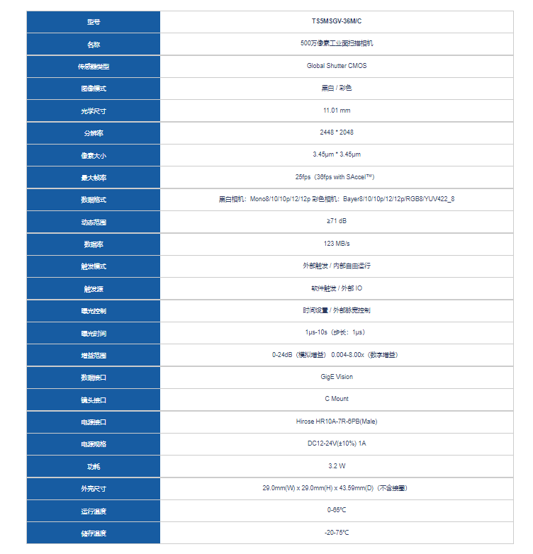 I-Tek埃科 TS5MSGV-36M/C 中小幅面扫描相机
