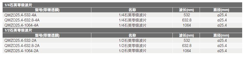 1. QWZO系列石英零级波片: