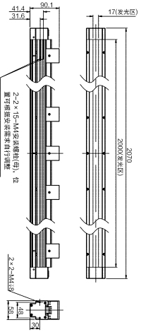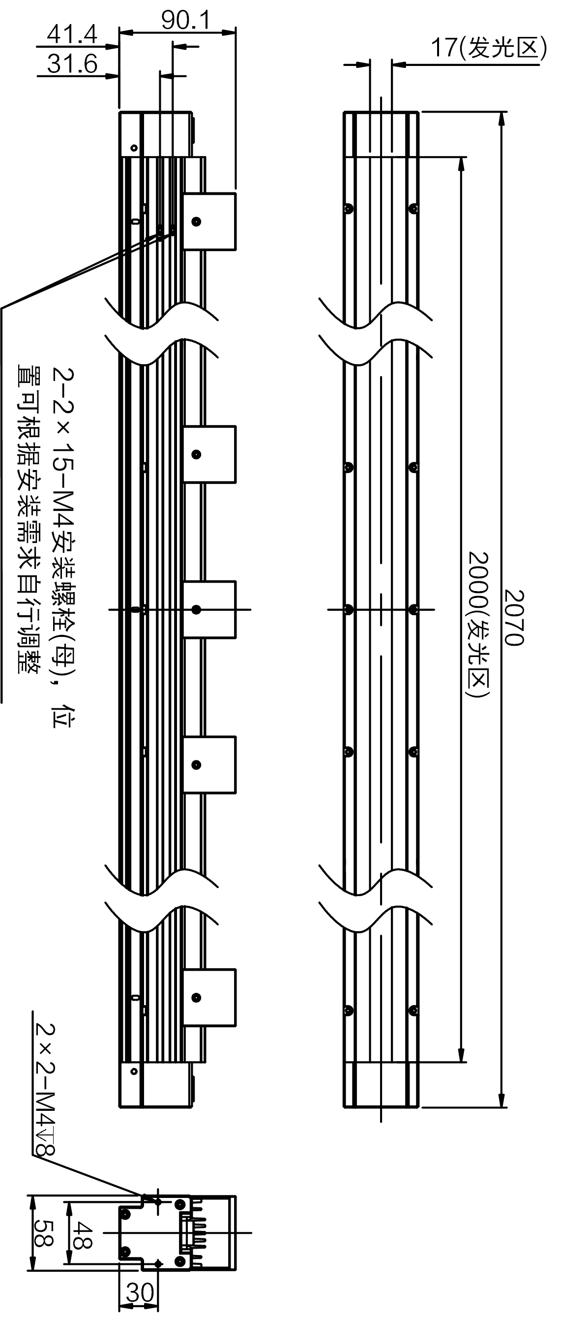 外形尺寸 | 2070 mm × 58 mm × 90.1 mm |
