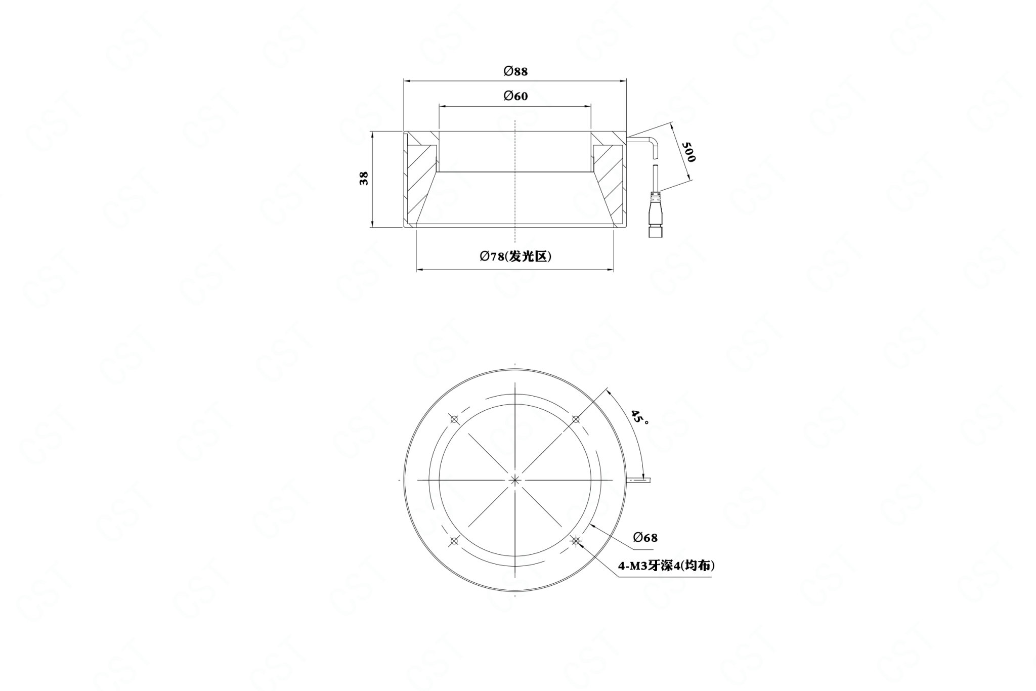 产品特点: 提供低角度照射,适用于圆形被测物体,采用特殊漫射材料,均匀性高,无灯珠干扰。