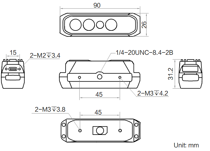 结构 | 外形尺寸 | 90 mm × 26 mm × 31.2 mm |