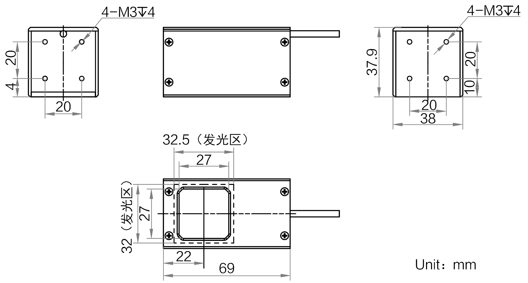 结构 | 外形尺寸 | 69 mm × 37.9 mm × 38 mm |