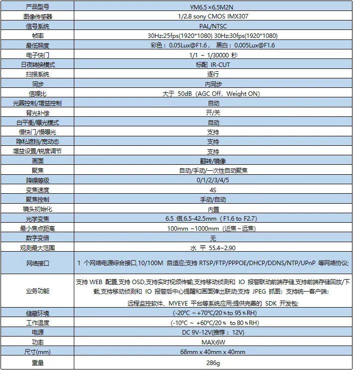 山田YAMAKO YM6.5x6.5M2N 网络一体化机芯