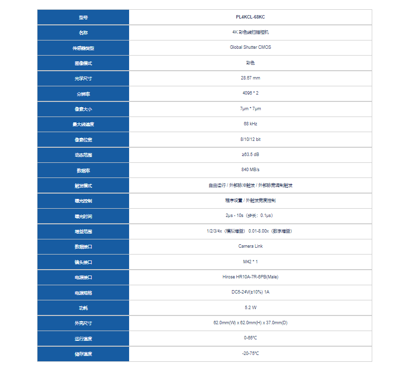I-Tek埃科 PL4KCL-68KC 线扫描相机