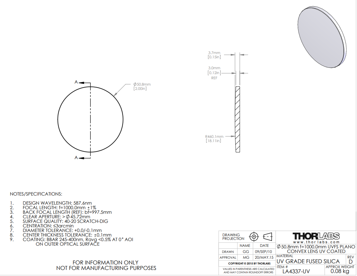 Thorlabs索雷博 LA4337-UV 平凸透镜