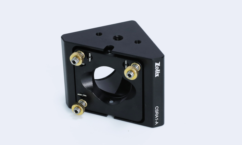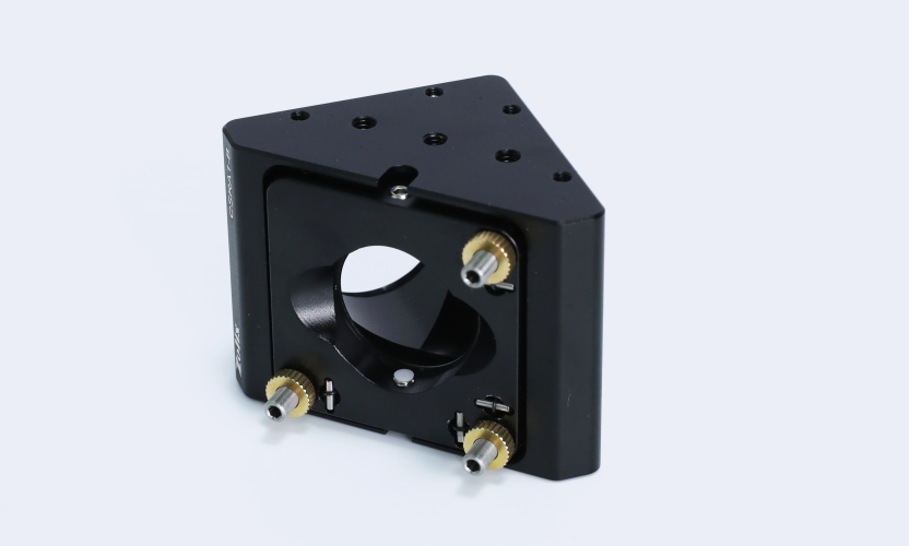 Zolix 笼式系统直角反射镜架适用于相对于光轴 45° 角安装反射镜,兼容 30 mm 笼式系统,适合搭建紧凑型系统。该镜架入射和出射端面均带有一个 SM1 螺纹孔,兼容 Ø25.4 mm 透镜套筒,斜面用于安装 Ø25.4 mm 最小厚度 3 mm 光学元件,紧定螺丝固定。带三个螺纹副,实现 ±3º 俯仰和倾斜角度调节,±2.5 mm 线性位移调节。入射端面和出射端面相互垂直。提供入射端面和出射端面 Ø6 mm 接杆固定安装方式 :光壁孔安装和螺纹孔安装两个版本可选。