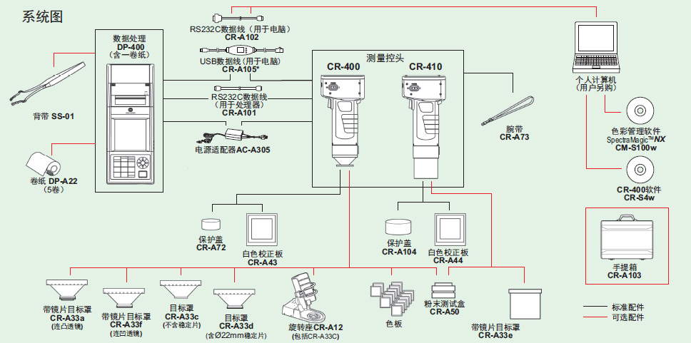 标准色*2 | 与测量探头连接以后可以存储100个数据,亦可以通过输入的方式将数据存储在处理器里面 |