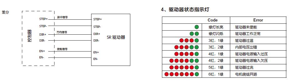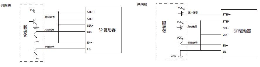 SR2 驱动器有2 个高速输入口STEP 和DIR,光电隔离,可以接受5-24VDC 单端或差分信号,*高电压可达28V,信号下降沿有效。信号输入口有高速数字滤波器,滤波频率为2MHZ。