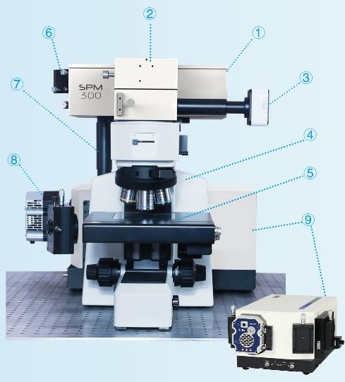 SPM300-mini | 基础款半导体参数分析仪,只含一路532nm 激光器,常规正置显微镜,光谱仪,高精度XYZ 位移台 |