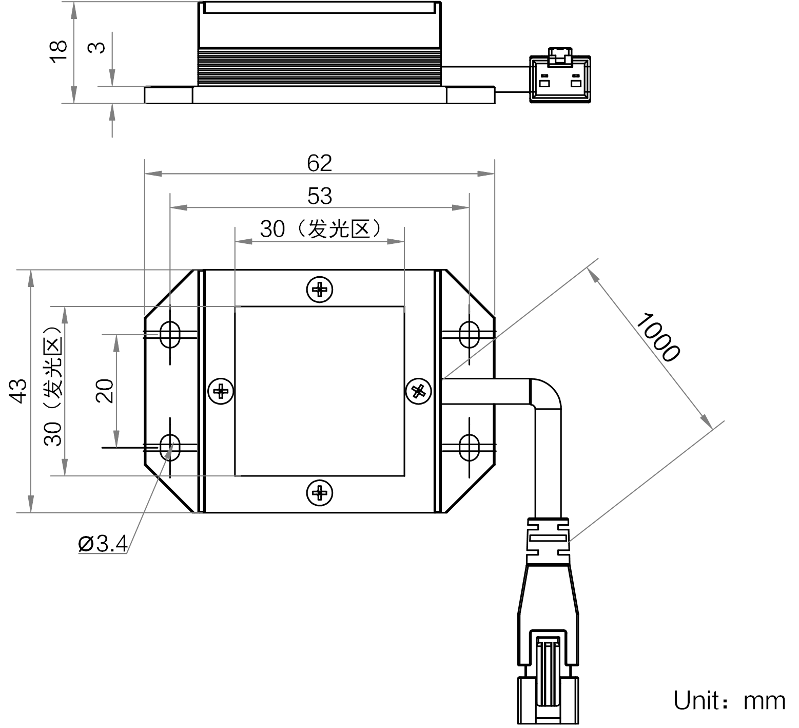 结构 | 外形尺寸 | 62 mm × 43 mm × 18 mm |