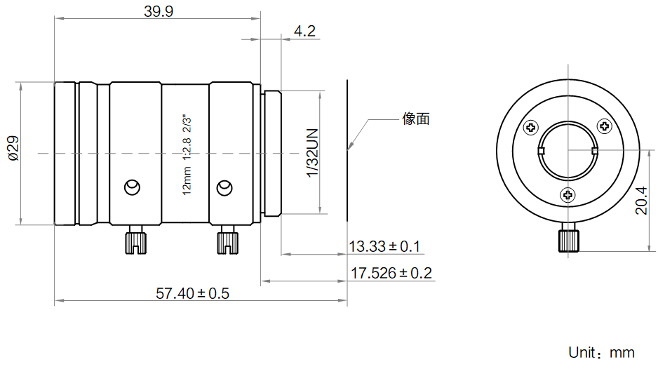 像面尺寸 | Φ11.2 mm(2/3'') |