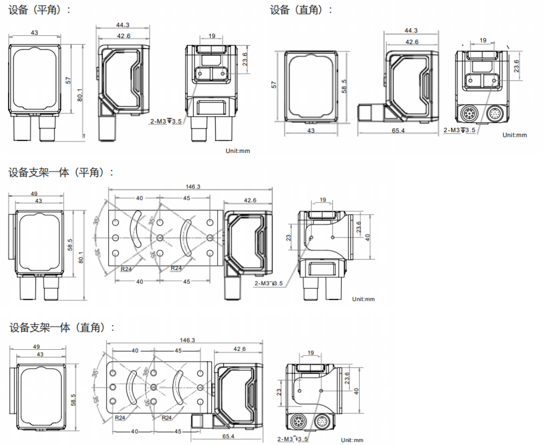 外形尺寸 | 平角:80.1 mm × 43 mm × 44.3 mm 直角:58.5 mm × 43 mm × 65.4 mm |