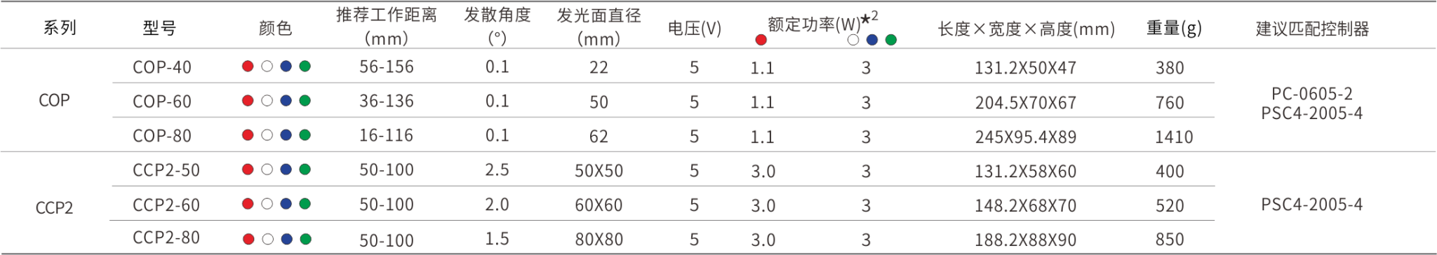*2 实际产品功率与功率表内容相差±10%为正常范围