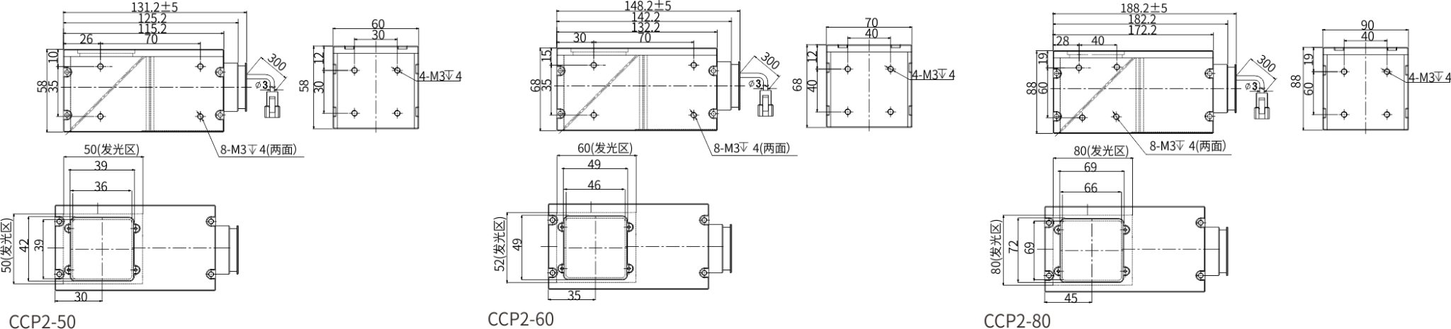 发散角示意图(代表例:CCP2-50)