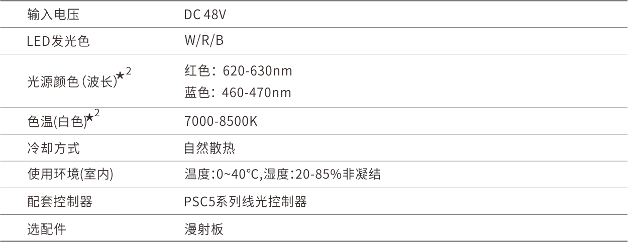 *2 波长与色温可定制,波长与色温因生产批次而异,有关详细内容,请参见规格书