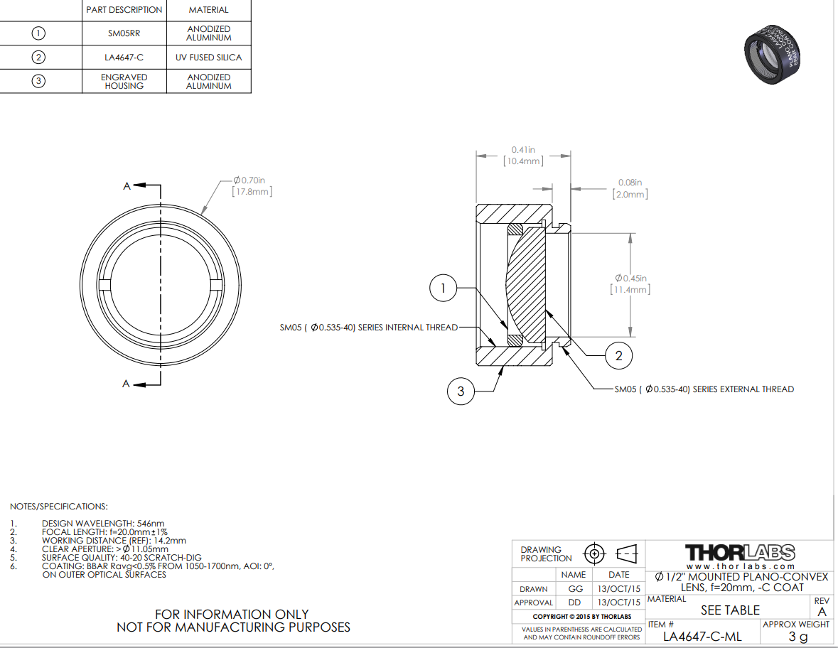| Clear Aperture | Ø1/2" Lenses: >Ø11.05 mm Ø1" Lenses: >Ø22.86 mm |
